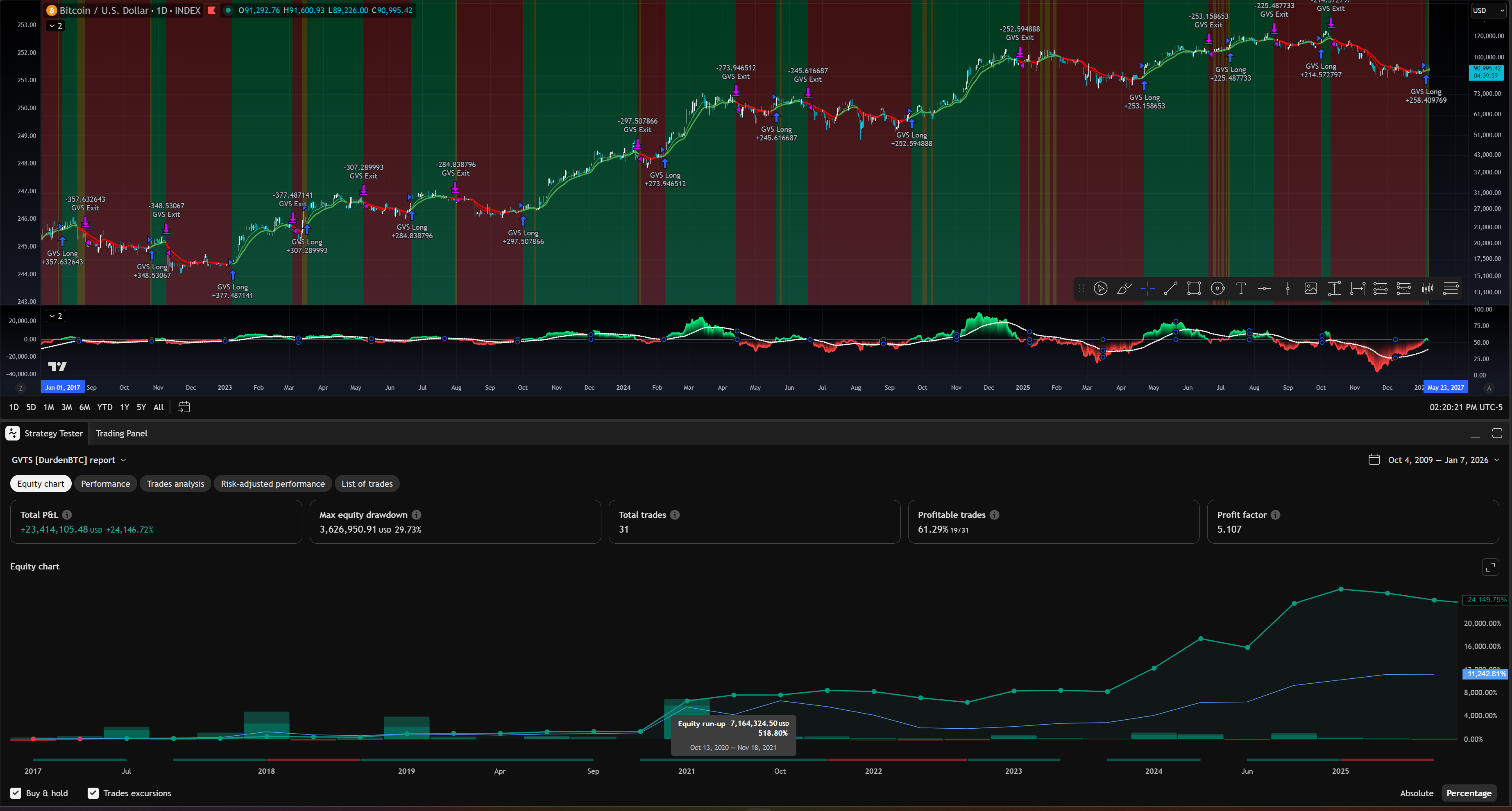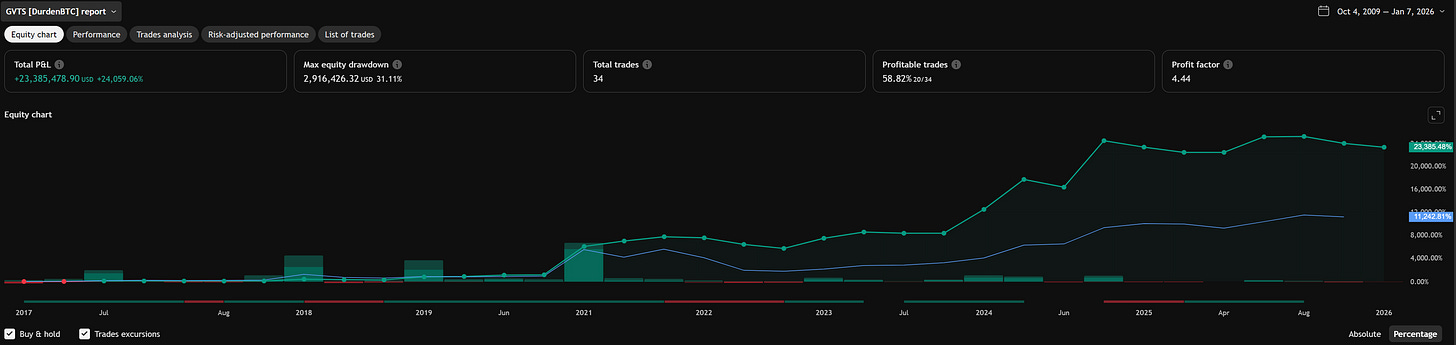 The GVTS indicator is available on TradingView to all subscribers. If you want to run this system yourself or optimize it for other assets, consider upgrading below.