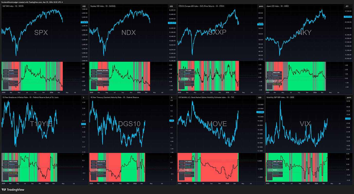 When bond vol is breaking out, I want less equity exposure and more capital ready to buy blood. When commodities and breakevens catch a bid, I want to respect that inflation isn’t “transitory” just because a press release said so. When growth, credit, and FX all agree the party’s back on, I want to be long...